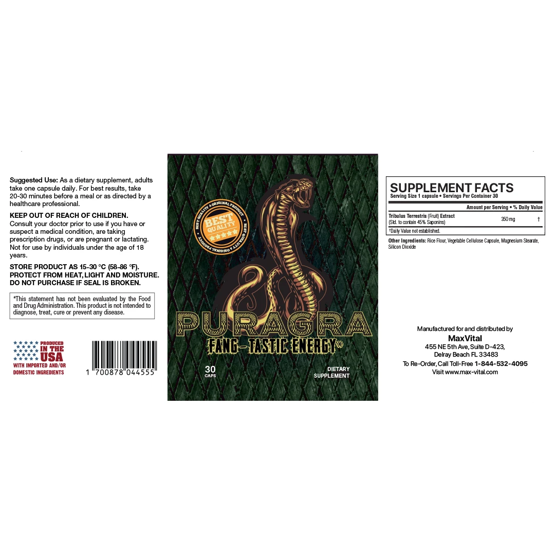Feel unstoppable with PURAGRA by MaxVital. Packed with 350 mg of high-potency Tribulus Terrestris extract, this formula is designed to fuel your energy, stamina, and endurance, naturally. Whether you’re at the gym, on the go, or pushing through long days, PURAGRA supports your drive without caffeine or synthetic stimulants.